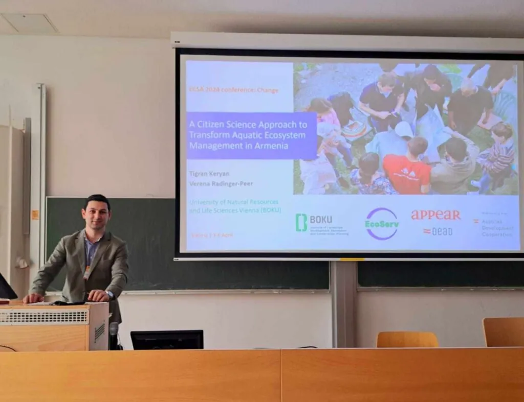 Tigran Keryan, a member of the EcoServ project team, participated at the 5th European Citizen Science Association (ECSA) conference, held from April 3rd to April 6th, 2024, in Vienna. Hosted by BOKU University and the Museum of Natural History Vienna, the conference focused on the motto ‘Change’, highlighting that we are in a time of rapid change on multiple levels.